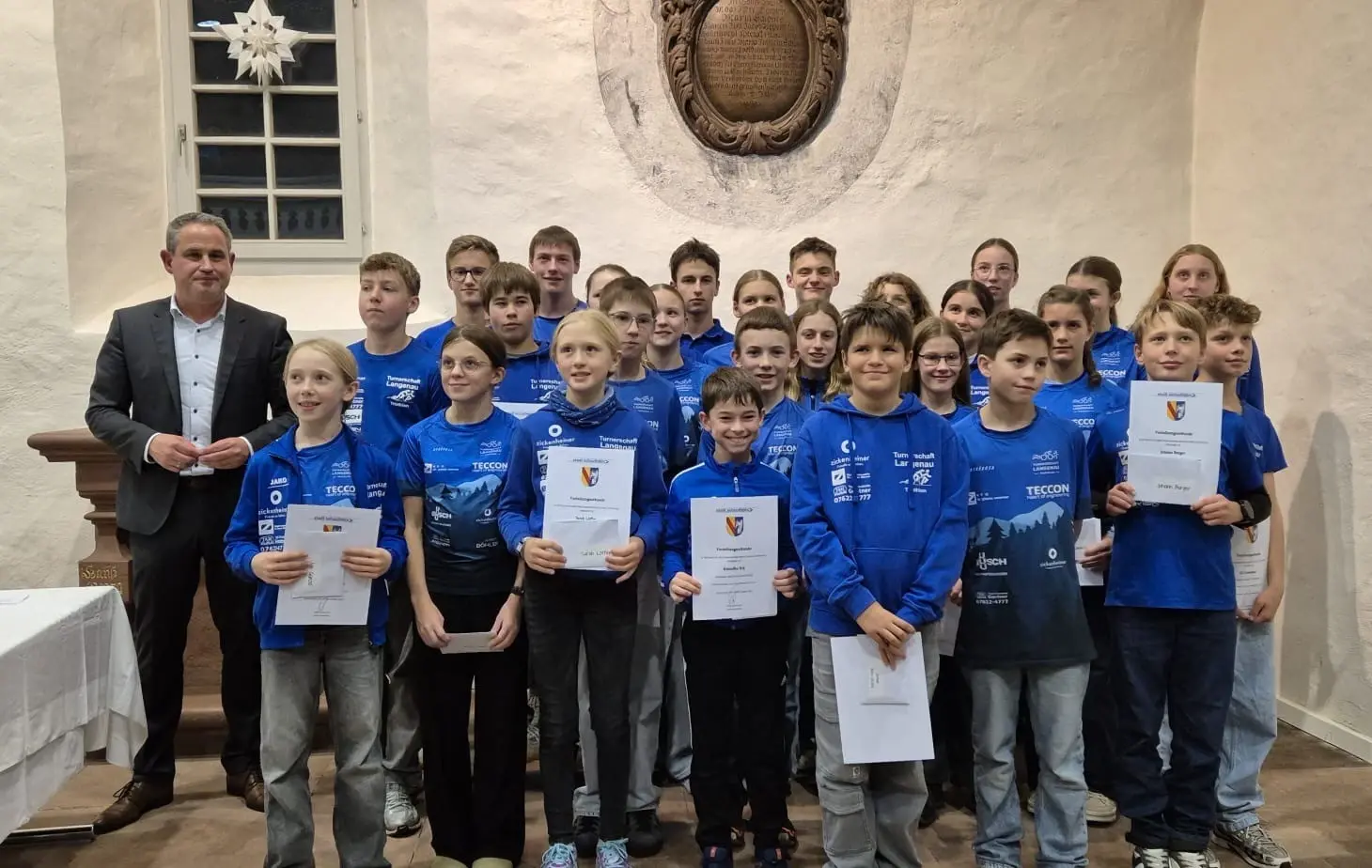 Wieder einmal waren die Triathleten der TSCH Langenau der Verein mit den meisten Ehrungen am Ehrungsabend der Stadt Schopfheim. Geehrt wurden dabei alle, die in diesem Jahr mindestens unter den Top-Drei bei den Baden-Württembergischen Meisterschaften waren. Bürgermeister Harscher hob besonders die Athletinnen und Athleten hervor, die im RACEPEDIA-Cup erfolgreich waren und bei den Deutschen Jugendmeisterschaften. Im Gesamtklassement des RACEPEDIA-Cups siegten Émilie Faucher, Manon Faucher, Johanna Otte, Lea Bächle und Michael Selzer. Besonders erwähnt wurde Heidi Schmidt, die bei den Deutschen Meisterschaften der Jugend B in der Einzelwertung den hervorragenden 3. Platz erkämpfte und mit dem Team Baden-Württemberg Deutsche Vizemeisterin wurde. Dasselbe schaffte Johanna Otte, die in der Einzelwertung Platz 6 erreichte. Zum ersten Mal wurde auch eine Liga-Mannschaft der Turnerschaft geehrt. Die Mixed-Liga-Starterinnen und -Starter erkämpften sich den hervorragenden 3. Platz von 16 Mannschaften.