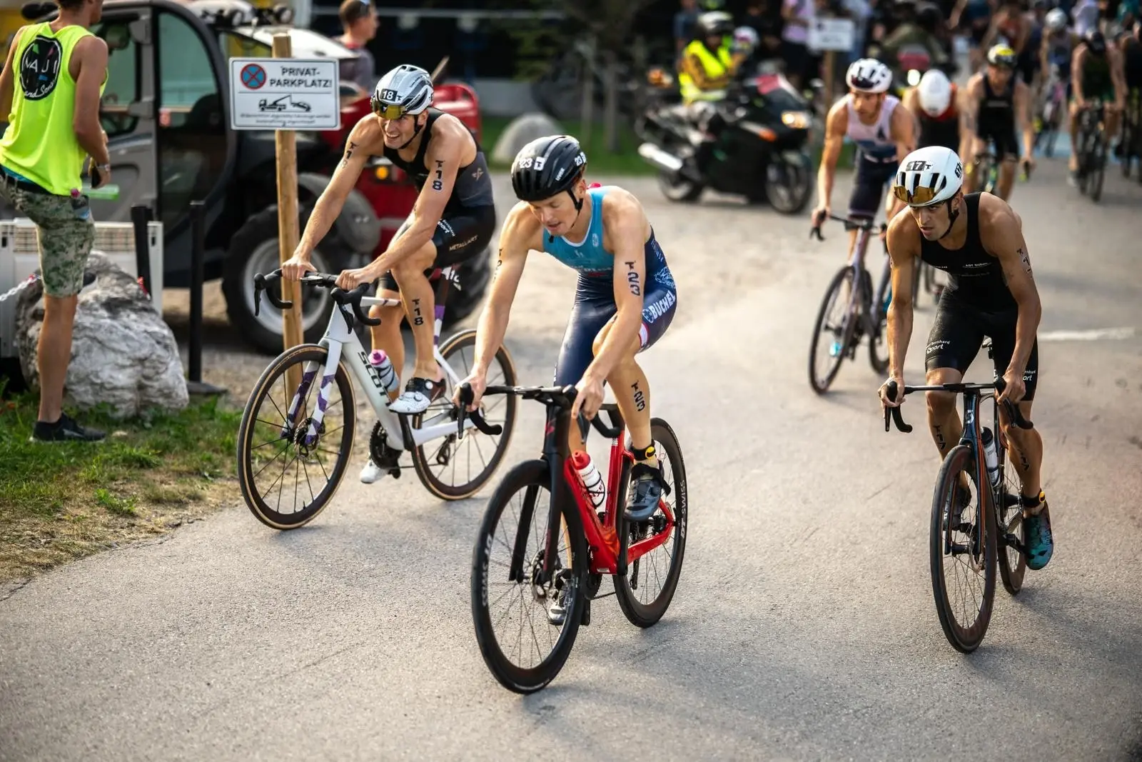 Herrliches Sommerwetter, ausverkauftes Starterfeld und starke sportliche Leistungen prägten die 31. Auflage des Skinfit Jannersee Triathlons. Über 400 Teilnehmer:innen sorgten für Gänsehaut-Atmosphäre rund um den Jannersee. Beim Sprinttriathlon setzten sich die Favorit:innen durch: Stephanie Wunderle (SG Niederwangen) gewann souverän bei den Damen, Magnus Männer (Skinfit Racing Team/TSCH Langenau) entschied das Herrenrennen mit der schnellsten Schwimm- und Laufzeit für sich. Er verwies Lokalmatador Jakob Meier und dessen Bruder Moritz Meier (beide Tri Team Bludenz / Skinfit Racing Team) klar auf die Plätze zwei und drei. Bis zum Schlusswechsel entwickelte sich ein packendes Vierkampf-Duell der Skinfit Racing Team-Athleten Magnus Männer, Jakob Meier, Moritz Meier und Jannik Stoll. Männer stieg mit Sekundenvorsprung vor Jakob Meier aus dem Wasser, auf dem Rad wechselte die Führung mehrfach. Auf den abschließenden 4 km setzte sich Männer unwiderstehlich ab und gewann mit rund 40 Sekunden Vorsprung vor den Lokalmatadoren Jakob und Moritz Meier.