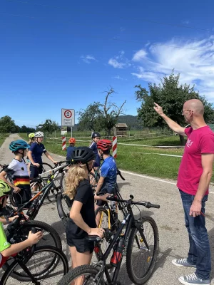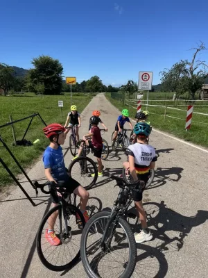 Viel los war bei der Maulburger Ferienaktion „Radtour übers Gelände“ für Kinder von 9 bis 12 Jahren. Die Turnerschaft Langenau hat unter der sportlichen Leitung von Hubert Klemm, der von einigen aktiven Jugendlichen der Triathleten unterstützt wurde, ein interessantes Training zusammengestellt. Nach ein paar Trainingsübungen wie Slalomfahren oder Schneckenrennen, die auf dem Hallenbad-Parkplatz stattfanden, ging es ins Gelände auf die Mountainbike-Strecke in Langenau. Nachdem man dort die Hindernisse, die zum Teil durch die Helfer abgesichert wurden, bewältigt hatte, fuhr man zusammen nach Maulburg zurück. Hier gab es für alle Teilnehmenden und Betreuenden noch ein Eis zum Abschluss eines schönen und interessanten Morgens.