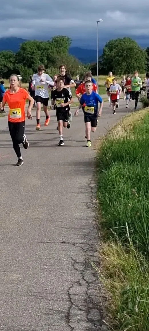 4 Altersklassen wurden gemeinsam gestartet, die Langenauer Triathleten zeigten sich ganz vorne im Feld und platzierten sich hervorragend. In der AK U10 lief Theo Deschler in die Top-10 und wurde 5. Sophia Olpe sicherte sich in der AK U12 mit dem 2. Rang einen Platz auf dem Siegerpodest. In 8 Minuten und 35 Sekunden konnte Rico Möglich die 2000 Meter lange Strecke der AK U14 zurücklegen und siegte. Dies war bereits der 4. Wertungslauf der Laufserie des Markgräfler-Cups und somit stieg die Chance, dass die Triathleten der TSCH Langenau auch im Jahr 2025, in gewissen Altersklassen, die schnellsten Läufer im Markgräflerland stellen.