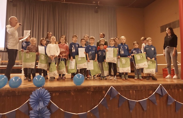 Ein sehr erfolgreiches und arbeitsintensives Jahr ließen am Samstag in der Festhalle in Langenau die Langenauer Triathleten Revue passieren. Zuerst trafen sich die rund 120 Gäste beim Sektempfang und schnell fanden sich die Geladenen in geselligen Gesprächsrunden zusammen. Danach eröffnete Abteilungsleiterin Maria Klemm den Abend und begrüßte die zahlreichen großen und kleinen Gäste. Sie bedankte sich bei allen, die sich im Laufe des Jahres ehrenamtlich auf irgendeine Weise im Verein nützlich gemacht hatten, sei es im Training, bei Vereinsveranstaltungen oder in der Abteilungsführung. Der Dank ging aber auch an die Eltern und Großeltern, die ihre Kinder und Enkel unermüdlich zu den Trainings chauffierten und sich durch die immer zahlreichen Info-Mails kämpfen, die erforderlich sind, um das Trainingsangebot zu koordinieren.