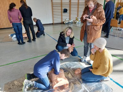 Nachdem wegen Corona längere Zeit kein Kurs mehr stattfinden konnte, trafen sich 20 Mitglieder der TSCH Langenau am vergangenen Samstag zu einem Erste Hilfe-Kurs in der Langenauer Sporthalle. Unter der Leitung von Herrn Sonnenmoser vom DRK Lörrach verbrachte man einen kurzweiligen und interessanten Tag, der von 8 bis 16 Uhr dauerte. Das Urteil aller Teilnehmer/innen war durchweg positiv: sehr viel gelernt bzw. «Verschüttetes» wieder aufgefrischt.