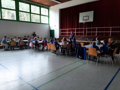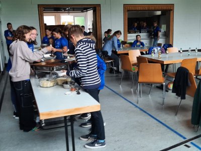 19 Schüler und Jugendliche und 4 Betreuer verbrachten das vergangene Wochenende in der Jugendherberge in Breisach. Die Anreise freitags gestaltete sich aufgrund des Wetters nicht ganz so einfach. Einige fuhren trotz des Regens wie gewohnt mit dem Rennrad nach Breisach und einige wurden von den Eltern nach Breisach gefahren. Zum gemeinsamen Abendessen waren aber alle wieder trocken und aufgewärmt.