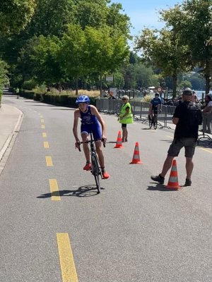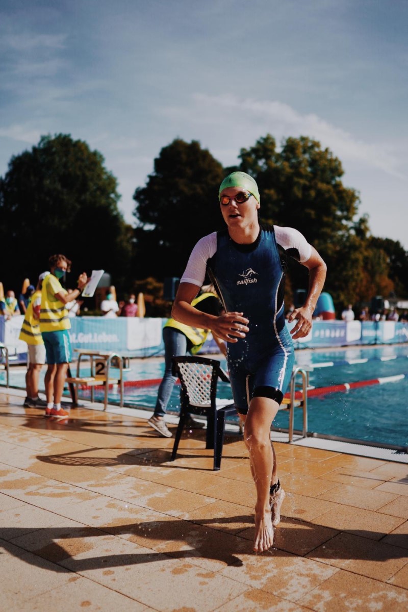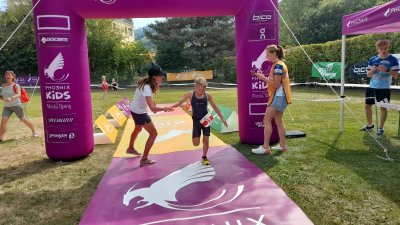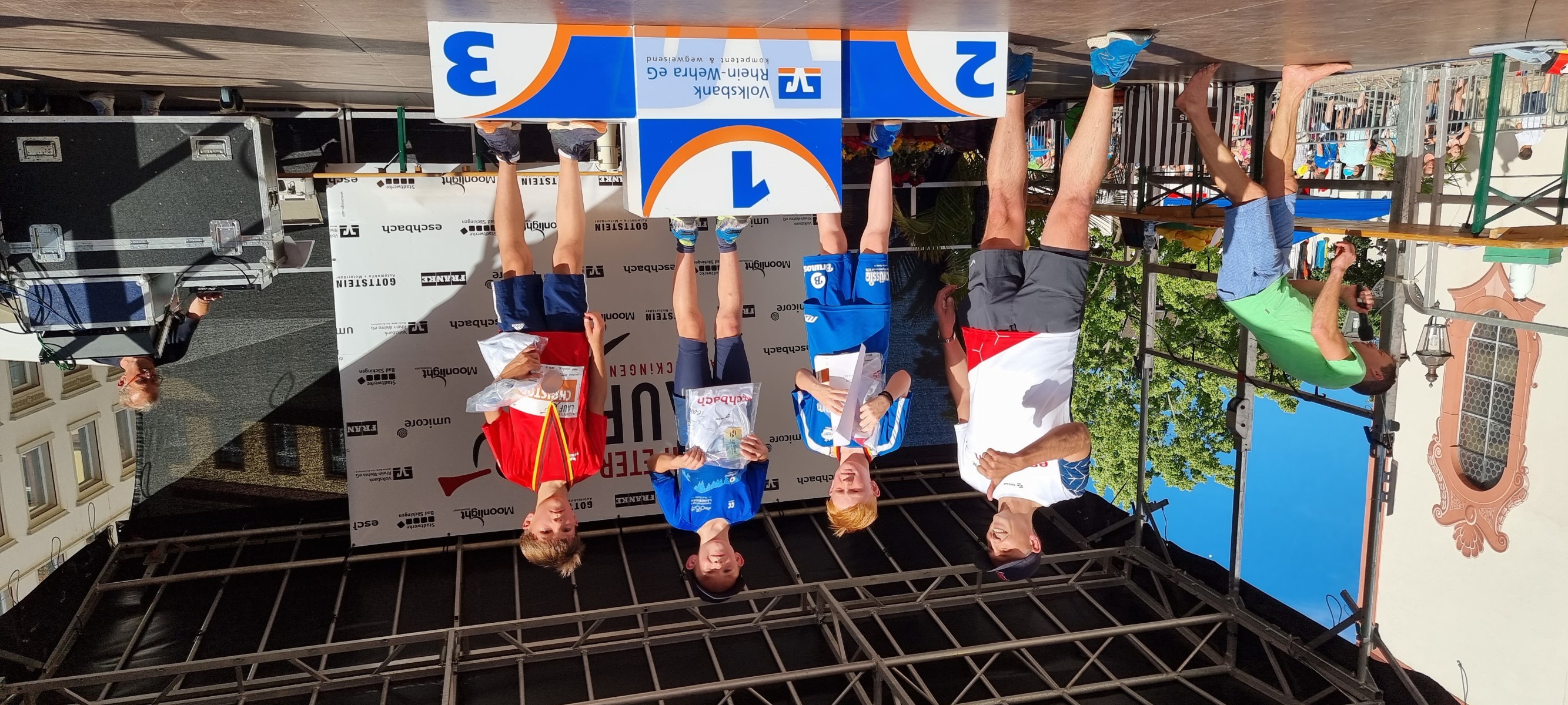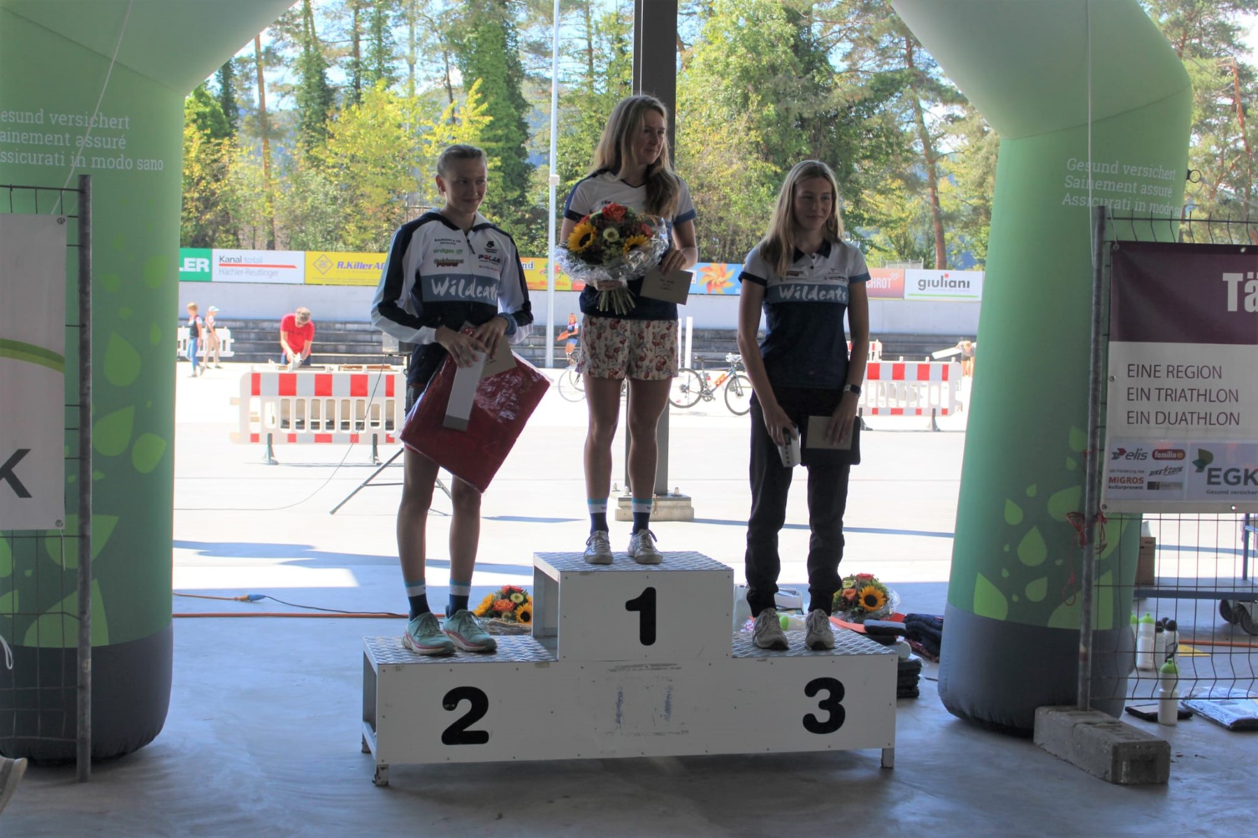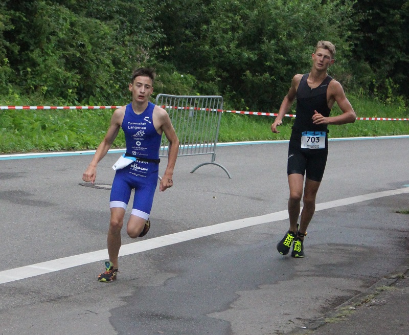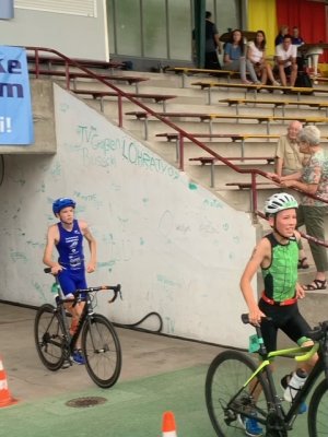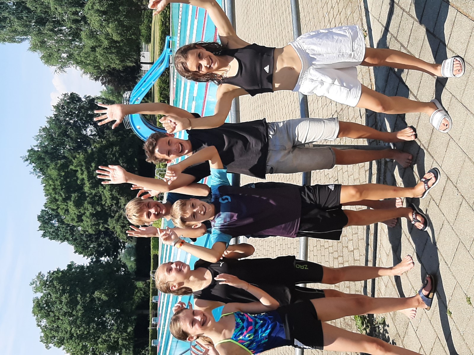 Von Anfang an zeigte das Team vom Gymnasium im oberschwäbischen Mengen, daß sie den Sieg unbedingt wollten. Mit 5 Triathleten und Triathletinnen und einer Schwimmerin angetreten, hatten die anderen Mannschaften eigentlich keine reale Chance. Doch die drei Jungs und drei Mädels vom HTG Lörrach machten jeweils einen Super- Wettkampf und lagen zwischenzeitlich sogar auf dem 2. Platz. Als einzige Triathletin war hier Noga Grossmann von den Langenauern Triathleten am Start, da Louan Deitmer leider erkrank war. Am Schluß sprang dann der hervorragende 3. Platz heraus. Die anderen Starter, Maelle Mößner, Lea Büchle, Maik Ebel, Levin Ziemek und David Neumann kamen vom Schwimmen, Tennis und Handball.