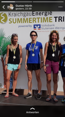 Mit mehrwöchigem, krankheitsbedingten Trainingsrückstand ging Diana bei den Baden-Württembergischen Meisterschaften in Karlsdorf an den Start. Über 120 Damen nahmen die Olympische Distanz bei Temperaturen um 34° in Angriff. Im Feld ihrer AK um den BW-Titel überraschte Diana mit der schnellsten Schwimmzeit, wo nach den ersten 750m auch noch ein Landgang zu absolvieren war. Mit einem Schnitt von 34km/h auf der Radstrecke, konnte sie die gute Platzierung halten um am Ende auf der Laufstrecke (47:45 / 2.) sich auf Rang 2 in der AK vorzuschieben. Am Ende musste sich Diana nur Uta Knape (Triathlon Team Ute Möckel), der mehrfachen Hawaii-, WM- und EM Starterin geschlagen geben. Auch der 20. Gesamtrang unter den 115 Damen, die im Ziel ankamen, war mehr als erwartet.