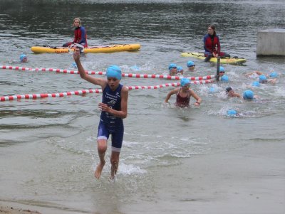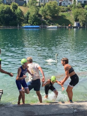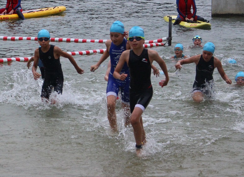 Bei kühlen Außentemperaturen aber Badewannen-Wärme im See gingen die 6 Athleten aus Langenau an den Start.