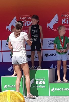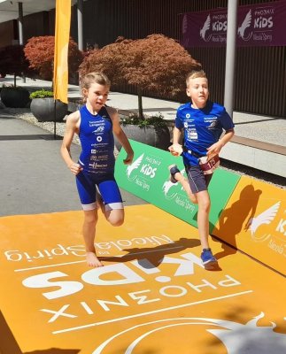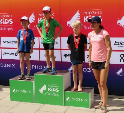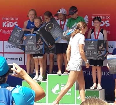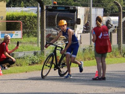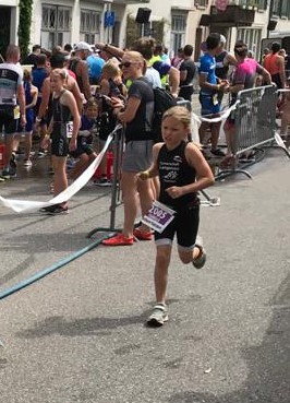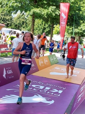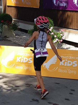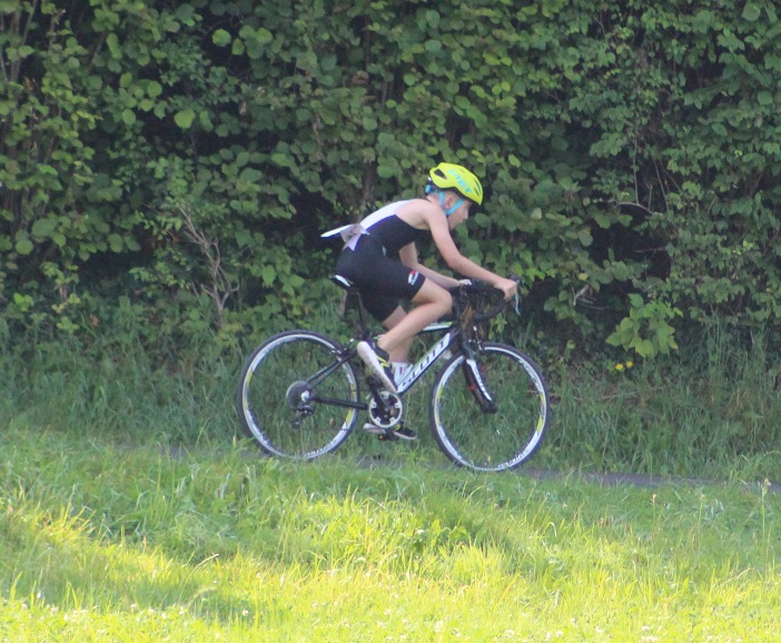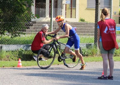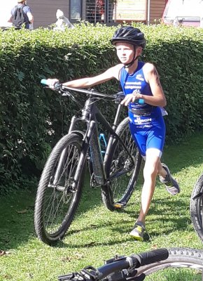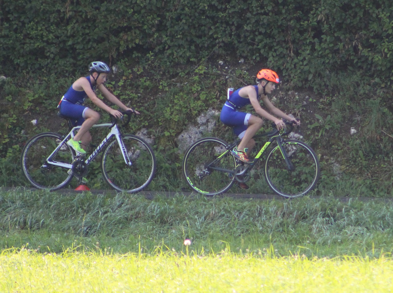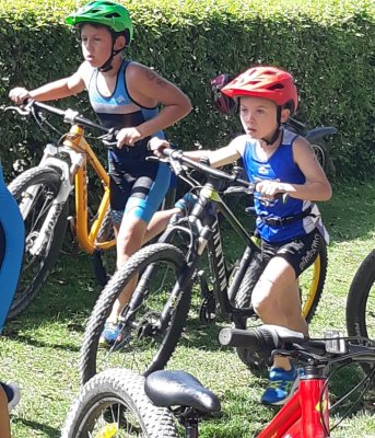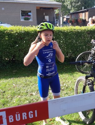 Die Athleten hatten anspruchsvolle Rad- und Laufstrecke mit ordentlichen Steigungen zu bewältigen. Sophie Winter durfte 50 Meter Schwimmen, 1500 Meter Radfahren und 400 Meter Laufen. Sie kam nach dem Schwimmen als erste aus dem Wasser, hatte in der Wechselzone aber leider ihr Fahrrad übersehen und dadurch wertvolle Zeit verloren. So ist sie dann als zweite auf die Radstrecke und hat die bisherige Seriensiegerin in ihrer Altersklasse aus Calw vor sich hergetrieben. Am Ende kam sie in einem Fotofinish mit 0,5 Sekunden Rückstand auf Platz 2. Ben Winter setzte sich von Anfang an die Spitze und behauptete diese Führung bis ins Ziel. Er durfte 25 Meter Schwimmen, 1500 Meter Radfahren und 300 Meter laufen.
