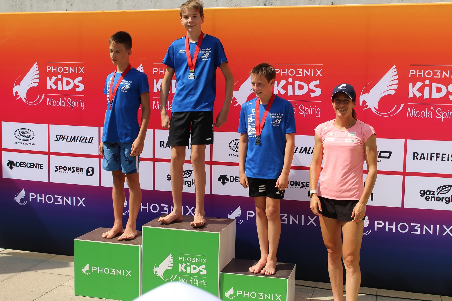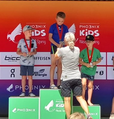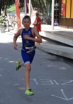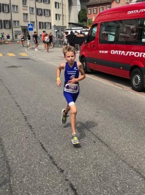 In Laupen fand noch ein Schüler-Wettkampf der Schweizer Spirig-Serie statt. Als Einziger der Langenauer startete Nicolas. Er machte hier kurzen Prozess mit seinen 21 Mitkonkurrenten und kam als Erster aus dem Wasser und dann vom Fahrrad und gab dann auch diese Führung bis ins Ziel nicht mehr ab. Er landete damit zum Abschluss der Serie einen klassischen Start-Ziel-Sieg.