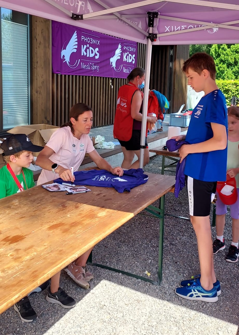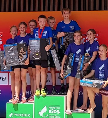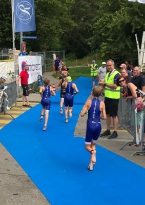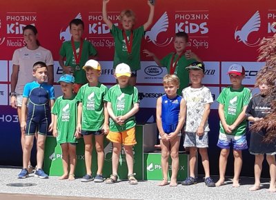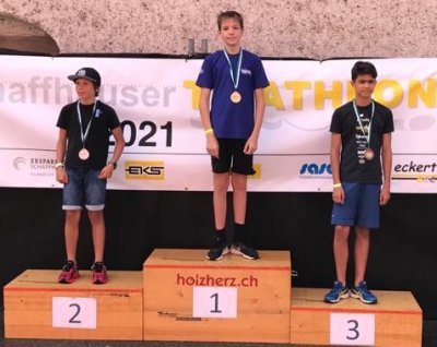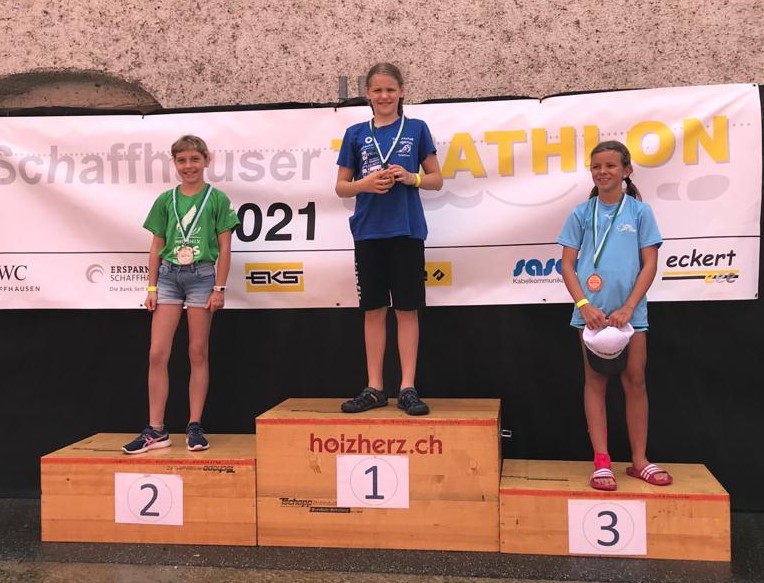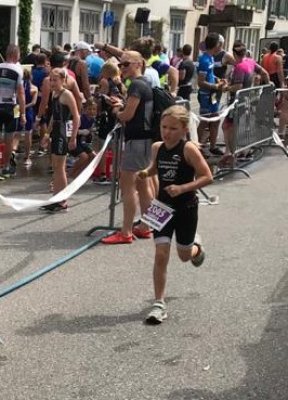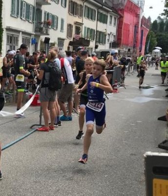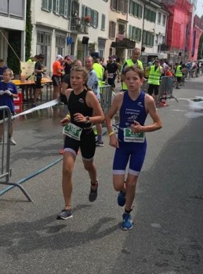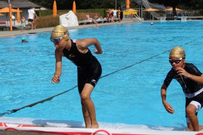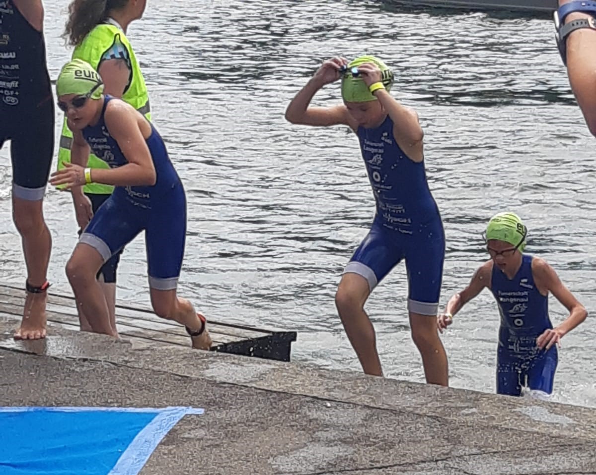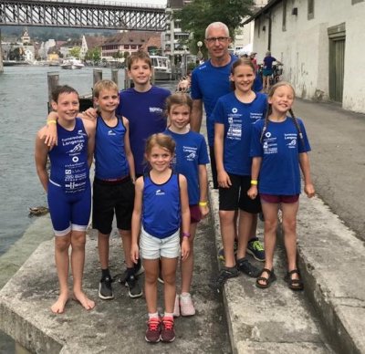 Einen Tag nach dem Wettkampf in Sarnen gab es für Robert Burger und sechs Langenauer Kids keine Pause. Nächstes Ziel war wieder die Schweiz. Wie die Kids die Doppelbelastung von zwei Wettkämpfen an einem Wochenende meistern würden, sollte sich dann beim ältesten Triathlon der Schweiz in Schaffhausen zeigen. Hier musste die Schwimmeinheit im Rhein absolvieren werden. Um es vorwegzunehmen, alle Sechs waren topfit und dank der optimalen Betreuung auch wieder auf „Goldkurs“.