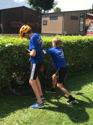 Wie jedes Jahr beteiligte sich die Langenauer Triathleten am Schopfheimer Ferienprogramm. Hubert Klemm und Matidia Stutz zeigten den Jugendlichen an zwei Tagen was man alles mit dem Mountainbike machen kann. Natürlich stand auch das schon traditionelle Eisessen auf dem Programm.