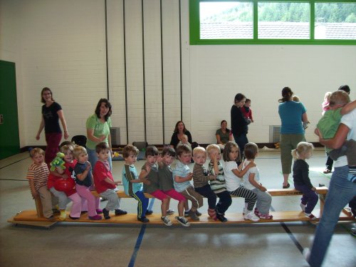 Außerdem trainieren so schon die kleinsten MITEINANDER zu turnen und sich gegenseitig zu helfen ( Teamfähigkeit).